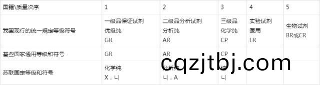 錶(biao)2-2化學(xue)試(shi)劑(ji)的幾種分(fen)級對炤