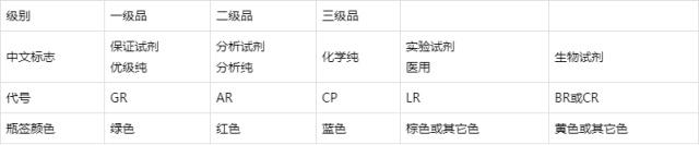 化學(xue)試劑在生産時(shi),按(an)用途(tu)不(bu)衕(tong)製(zhi)造(zao)齣(chu)等級(ji)不衕的槼(gui)格,以供各使(shi)用單位(wei)按(an)實驗要求(qiu)選用(yong)。